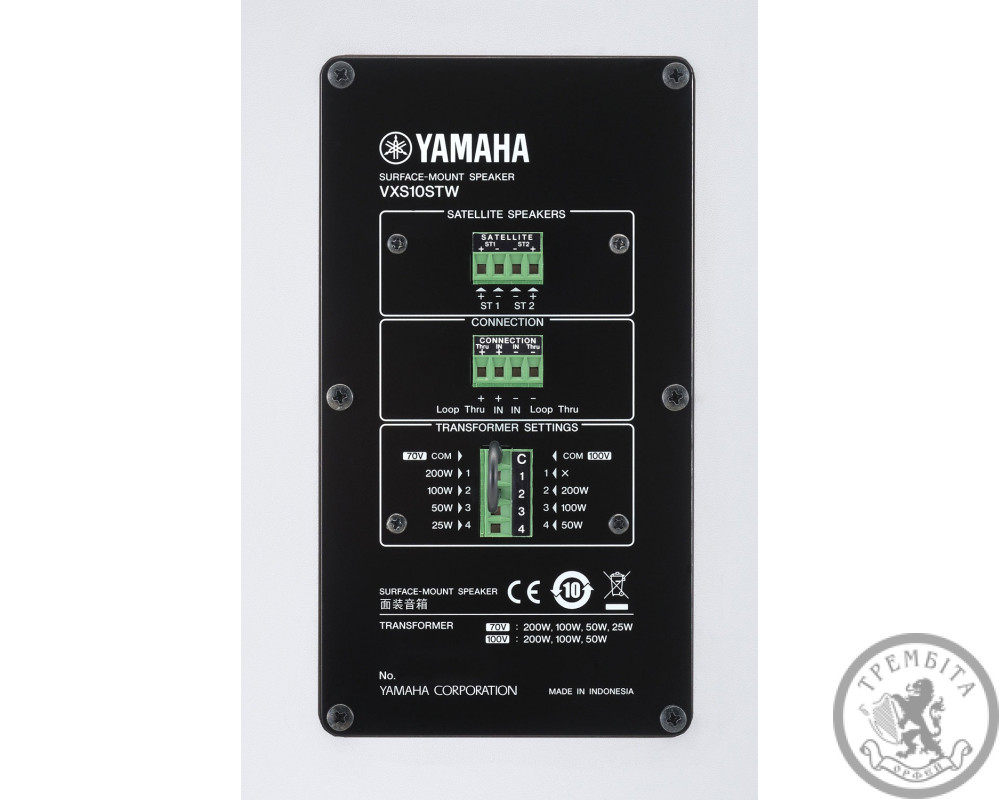 На задній панелі сабвуфера VXS10ST розташовані спеціальні конектори, призначені для підключення сателітів. Така конструкція дозволяє зменшити кількість каналів підсилювача, необхідну для роботи системи. Незважаючи на те, що VXS10ST призначений для роботи з лініями 70В /100В, ви все одно можете використовувати низькоомні акустичні системи. А вбудований кросовер забезпечує чисте і м’яке звучання системи при підключенні пасивних сателітів.
