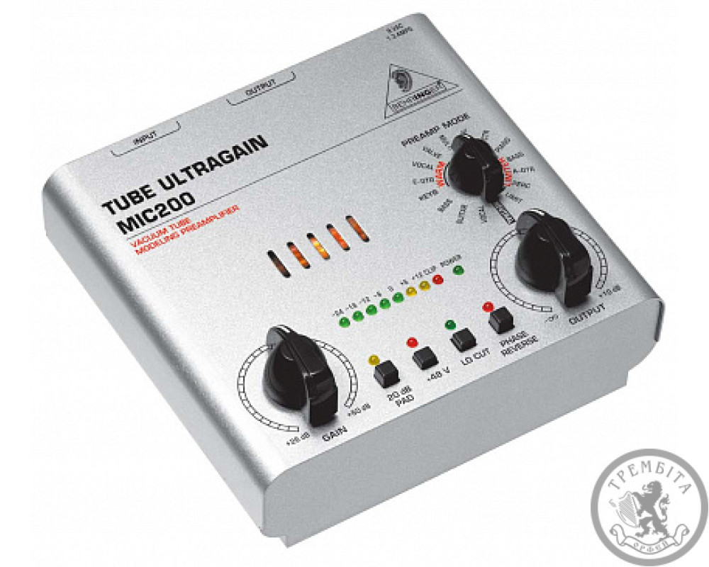 TUBE ULTRAGAIN MIC200 - першокласний мікрофонний / лінійний передпідсилювач з ламповим каскадом, технологією моделювання передпідсилювачів і вбудованим лімітером, призначений для використання в студії, на сцені і з системами запису на жорсткий диск. Ультрагнучка функція моделювання передпідсилювачів дає Вам можливість швидко оптимізувати запис за допомогою вибору одного з 16 алгоритмів передпідсилювачів, розроблених для вокалу, акустичних і електрогітар, баса, клавішних, ударних та ін. Застосування в аудіотракті відібраної вручну вакуумної лампи 12AX7, в поєднанні з технологією UTC, забезпечує тепле звучання і мінімальні шуми.