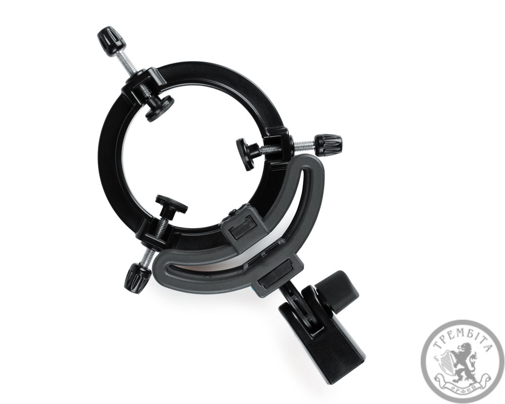 - Три (3) гумові затискачі, встановлені по центру, регулюються для фіксації мікрофона