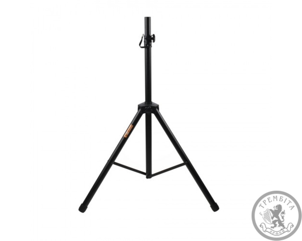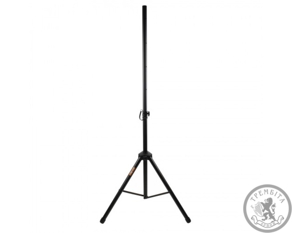 Якісна міцна стійка для акустичної системи, пряма. Вантажопідйомність 90 кг. Ідеально підходить для топів і невеликих широкосмугових акустичних систем. Можливість регулювання по висоті 1,25 - 2 м. 6 ступенів регулювання завдяки наявності шести отворів і надійно фіксується штифта. Ноги оснащені гумовими насадками, які забезпечують надійність установки стійки і захист поверхні від подряпин. Матеріал: метал і пластик. Колір чорний.