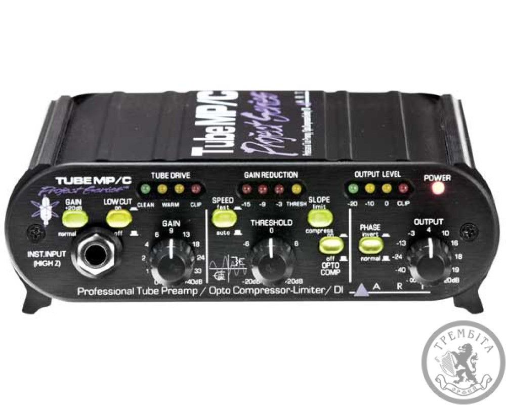 Передпідсилювач / компресор Tube MP / C - це багатоцільовий інструмент для будь-яких видів робіт. Два незалежних контури лампового підсилювача і аналогового VCA-компресора з оптичним керуючим елементом, розміщені в одному компактному корпусі. Широкі можливості приладу дозволяють використовувати його як в якості мікрофонного / інструментального підсилювача, так і DI-Box пристрою. Tube MP / C призначений для запису, звукопідсилення або в якості інструментального підсилювача. Внутрішній каскад Tube MP / C є гібридне поєднання новітніх твердотільних і лампових технологій. Балансний вхід підсилювача забезпечує надзвичайно низький рівень шуму і чудове придушення синфазного сигналу. ¼-дюймовий TS Jack роз'єм з високим вхідним опором уможливлює підключення будь-якого пристрою з лінійним сигналом, а також використовувати як DI-Box. Другий каскад підсилювача складається з тріода 12AX7A який має регульовану напругу постійного струму, і забезпечує додатковий 20 дБ посилення.