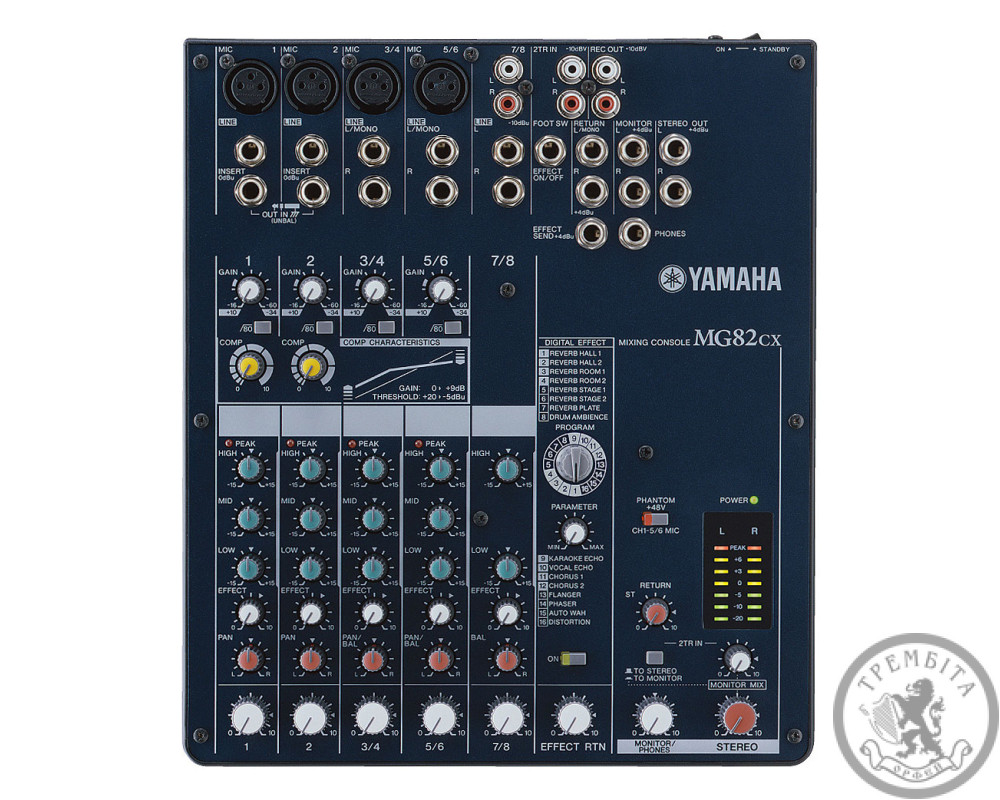 Модель MG82CX має вбудований процесор ефектів класу SPX приладів Yamaha. Цифровий мультіеффект процесор має 16 програм, включаючи реверберацію, затримку, модуляцію і дисторшн, які Ви можете використовувати для різноманітності і прикраси звучання. Кожна з програм має редаговані параметри, а також включення / вимикання ефекту і контролер повернення кількості ефекту в мікс.