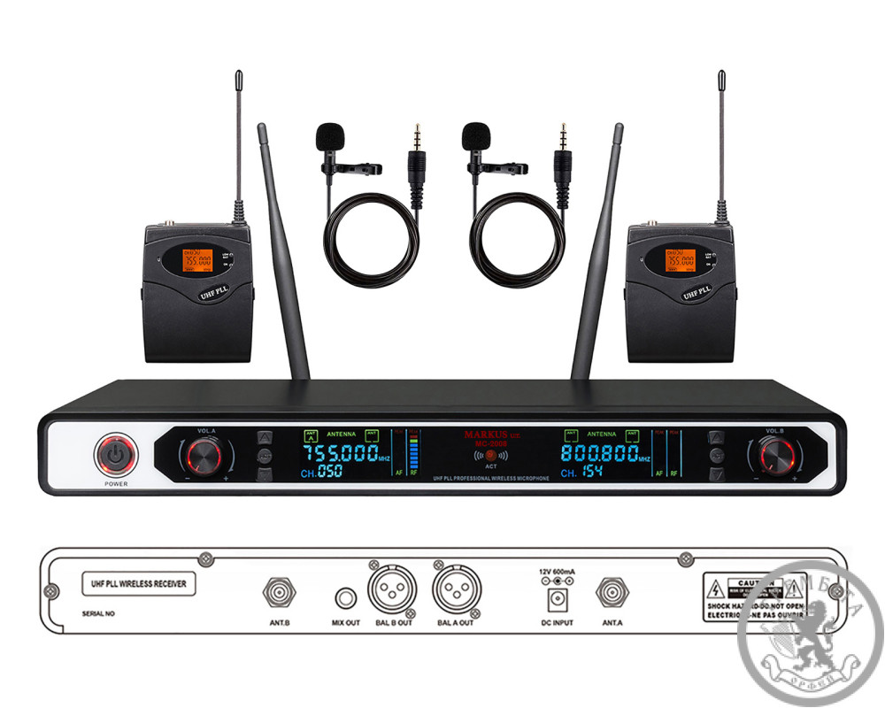 Радіосистема з двома петличними мікрофонами MARKUS MC 2008 Label