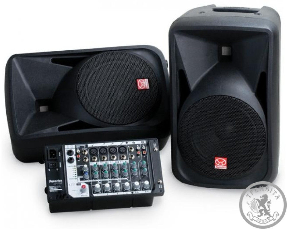 Superlux SP108 включає в себе дві двосмугові акустичні системи в корпусах з міцного поліпропілену, восьмиканальний мікшерний пульт з вбудованим 300 Вт підсилювачем і цифровим ревербератором. Для зручності транспортування, мікшерний пульт може бути вбудований в задню стінку акустичної системи.