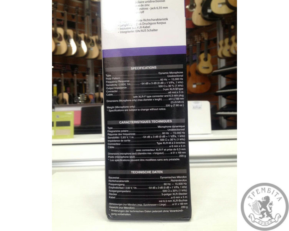 Додатково Кабель (XLR - 1/4 "TS Jack) в комплекті
