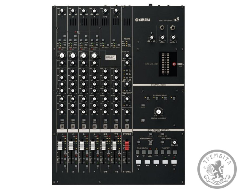Модель Yamaha N8 має 8 вхідних каналів (4 мікрофонних та 4 лінійних), також є 1 додатковий стерео вхід. Мікрофонні канали обладнані роз'ємами Insert і високоомними входами Hi-Z. З виходів присутні основний стерео вихід, моніторний вихід для контролю і вихід шини AUX, який поєднаний з виходом на навушники. Крім стерео шин Master і SOLO, мікшер має дві внутрішніх стерео шини AUX, одна з яких заведена на вбудований ревербератор, і окрему шину REC, яка не має зовнішнього виходу, а підключена до одного з входів вбудованої звукової карти. Модель Yamaha N8 обладнана 12-і канальним FireWire інтерфейсом. Його 12 вхідних каналів підключені до 8 виходів Direct Out каналів, до стерео шини REC і вихідний Master шини. Вихідні 12 каналів інтерфейсу підключені до 8 вхідних каналах мікшера, до стерео шині AUX і до моніторної стерео шині, при цьому вибрати, який сигнал підключений до вхідних ліній мікшера, з аналогового входу або з виходу комп'ютерної карти, можна селектором на передній панелі. Внутрішня комутація комп'ютерного інтерфейсу з каналами і шинами мікшера фіксована.